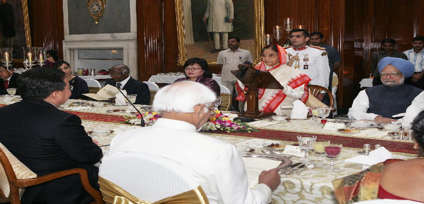 The President of India, Smt Pratibha Devisingh Patil at the Banquet Hosted in Honour of the President of Mongolia, HE Mr Tsakhiagiin Elbegdorj at Rashtrapati Bhavan in New Delhi on Sep 14, 2009