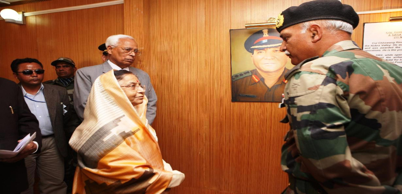 The President of India, Smt Pratibha Devisingh Patil seeing the Rescue Operation Photographs of the Areas Affected by the Cloudburst at Leh in Jammu & Kashmir on Sep 01, 2010