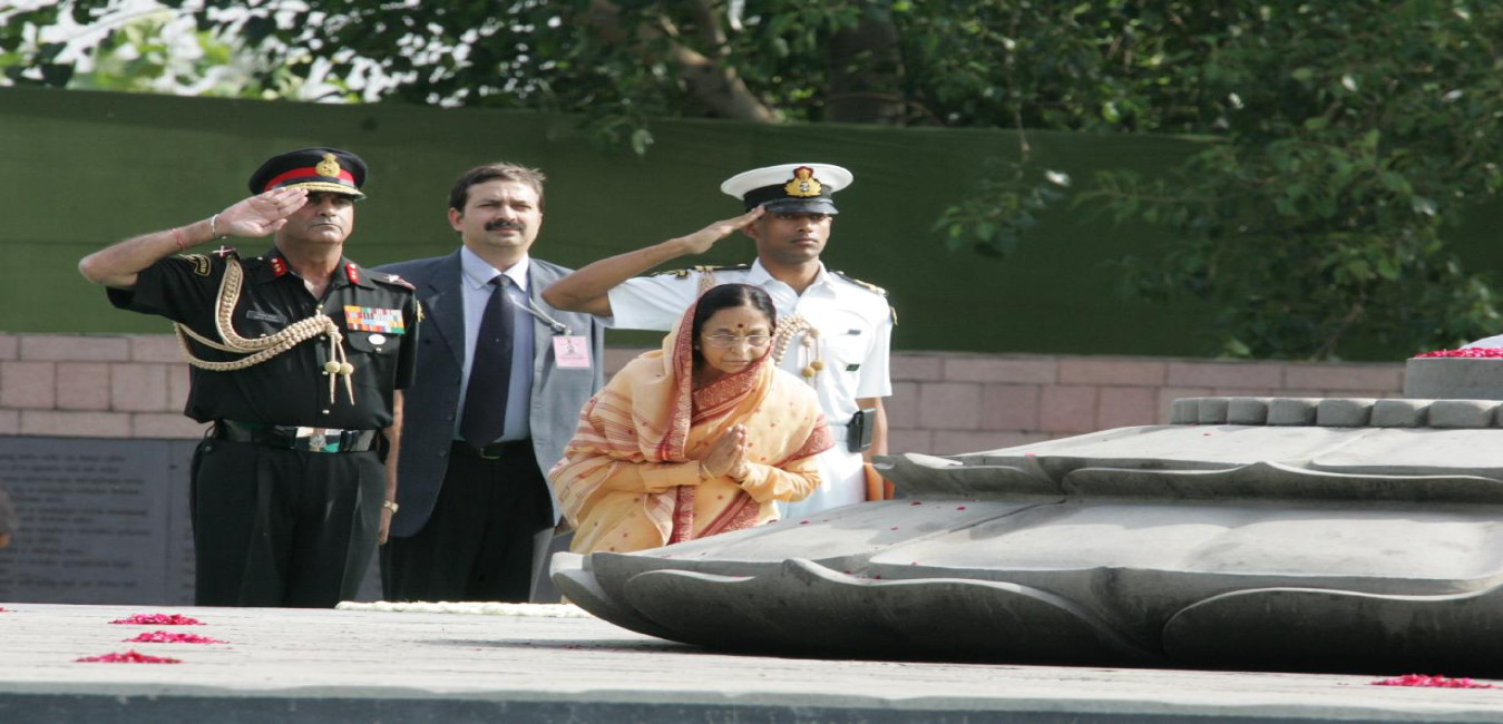 The President of India, Smt Pratibha Devisingh Patil paying tributes at the Samadhi of the Former Prime Minister of india, Late Smt Indira Gandhi at Shakti Sthal in New Delhi on July 26, 2007