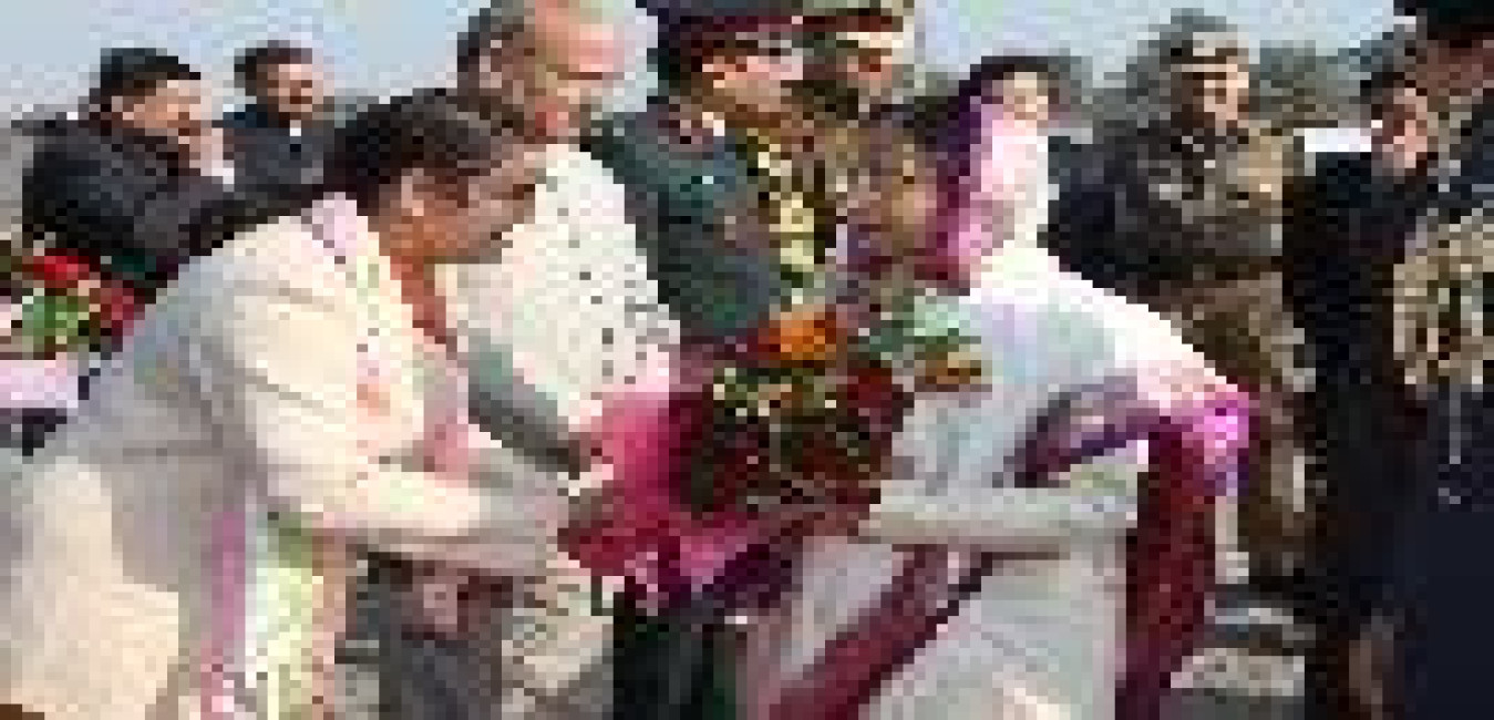 The President of India, Smt Pratibha Devisingh Patil being welcomed by the Chief Minister of Rajasthan, Shri Ashok Gehlot at Village Bandoli in Rajasthan on Jan 10, 2012