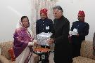 The President of India, Smt Pratibha Devisingh Patil exchanging Gifts with the Governor of Rajasthan, Shri Shivraj Patil at Jaipur Raj Bhavan in Rajasthan on Jan 10, 2012