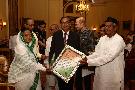 The President of India, Smt Pratibha Devisingh Patil exchanging gifts with Chief Minister of Kerala, Shri Oommen Chandy at Kollam in Kerala on Aug 31, 2011