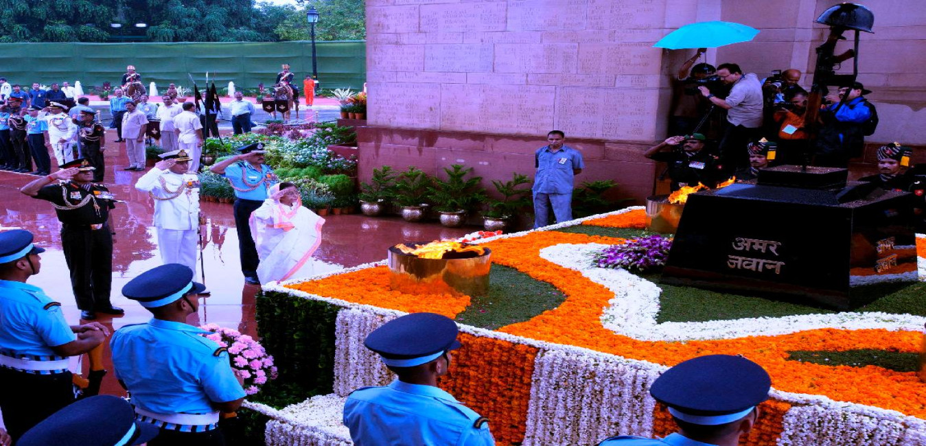 The President of India, Smt Pratibha Devisingh Patil paying tributes at the Amar Jawan Jyoti on the occasion of 65th Independence Day at India Gate in New Delhi on Aug 15, 2011