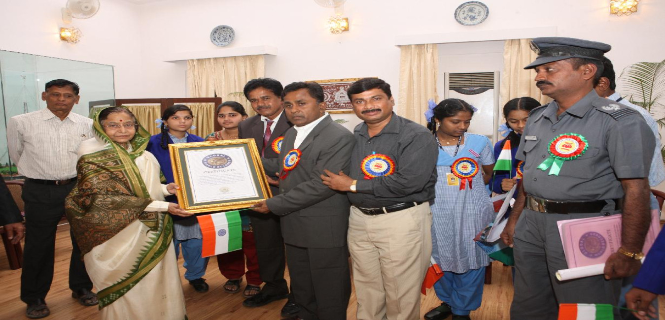 The President of India, Smt Pratibha Devisingh Patil posing for a Group Photograph with Students from Lotus Lap High School at Rashtrapati Nilayam of Hyderabad in Andhra Pradesh on Dec 30, 2010
