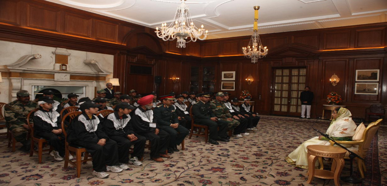The President of India, Smt Pratibha Devisingh Patil interacting with the Students of Poonch District (Jammu &Kashmir) Under Operation Sadbhavana of the Indian Army at Rashtrapati Bhavan in New Delhi on Dec 14, 2010