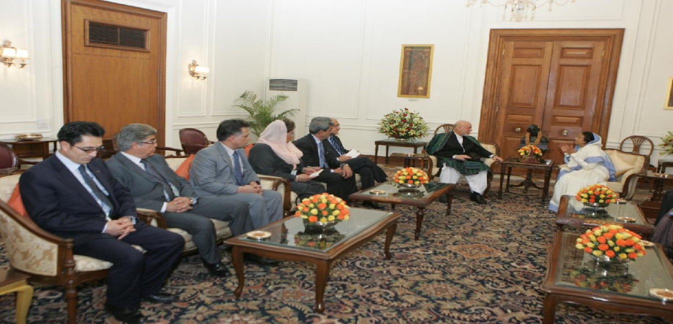 The President of the Islamic Republic of Afghanistan, HE Mr Hamid Karzai calling on the President of India, Smt Pratibha Devisingh Patil at Rashtrapati Bhavan in New Delhi on April 26, 2010