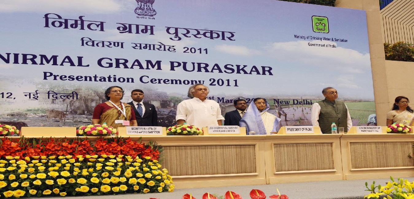 The President of India, Smt Pratibha Devisingh Patil presenting the Nirmal Gram Puraskar during a Presentation Ceremony at a Function at Vigyan Bhavan in New Delhi on March 21, 2012