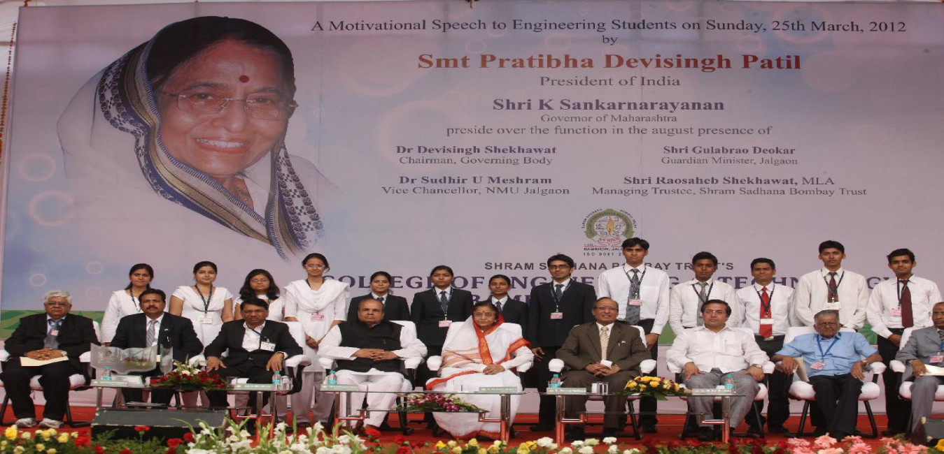 The President of India, Smt Pratibha Devisingh Patil being felicitated by the Principal of the College of Engineering and Technology at Jalgaon in Maharashtra on March 25, 2012
