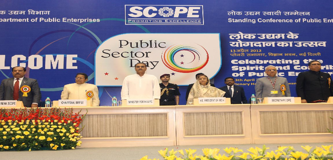 The President of India, Smt Pratibha Devisingh Patil during the Presentation Ceremony of the SCOPE Meritorious Awards on the occasion of the Annual Public Sector Day Celebration at Vigyan Bhawan in New Delhi on April 13, 2012