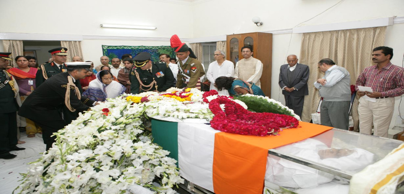 The President of India, Smt Pratibha Devisingh Patil paying homage at the Mortal Remains of the Former President of India, Late Shri R Venkataraman at Ekta Sthal in New Delhi on Jan 28, 2009