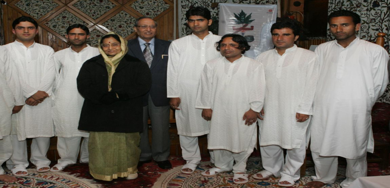 The President of India, Smt Pratibha Devisingh Patil posing for a Group Photographs at State Guest House in Jammu & Kashmir on May 25, 2008