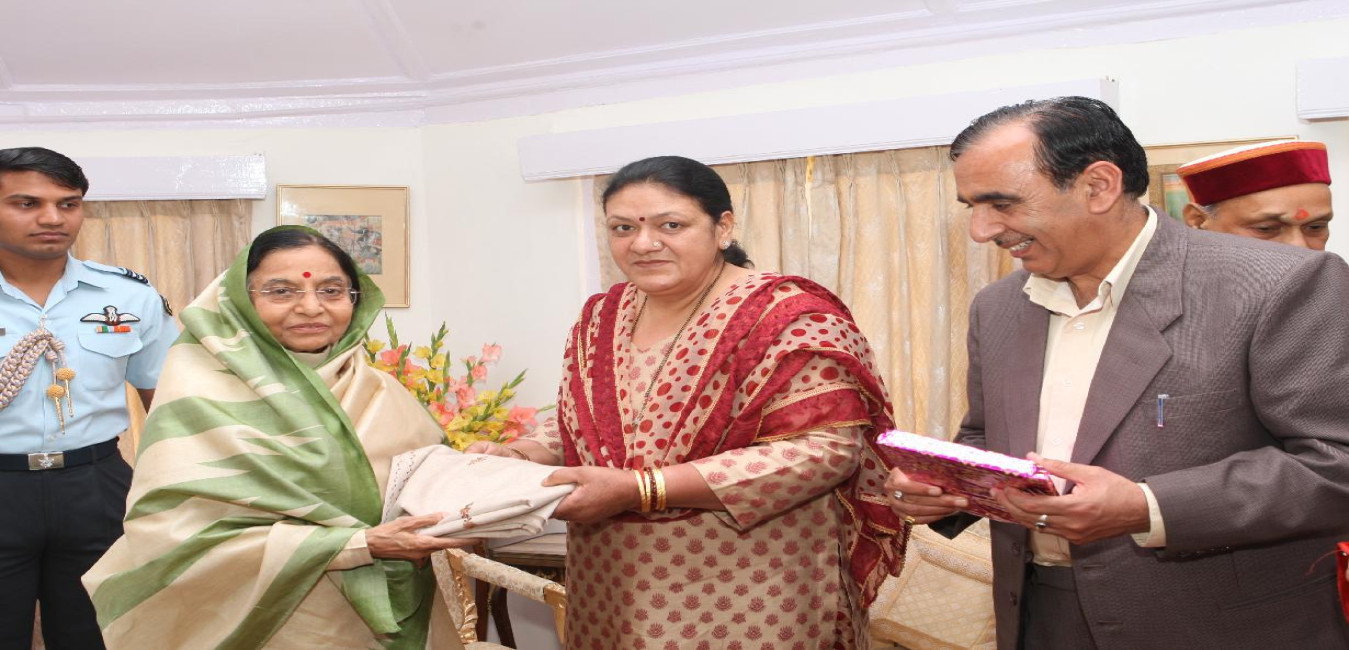 The President of India, Smt Pratibha Devisingh Patil interacting with the Chief Minister of Himachal Pradesh, Shri Prem Kumar Dhumal at Shimla in Himachal Pradesh on May 31, 2008