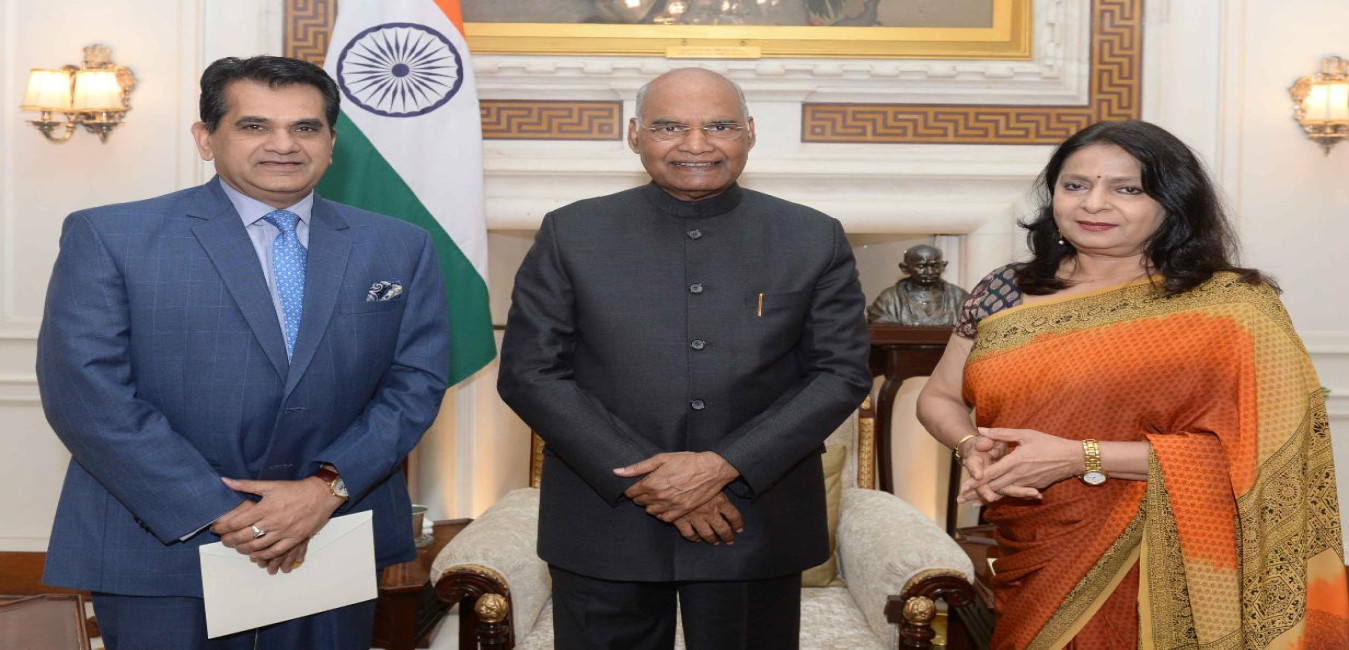 The CEO, NITI Aayog, Shri Amitabh Kant meeting with the President of India, Shri Ram Nath Kovind, at Rashtrapati Bhavan on March 23, 2018.
