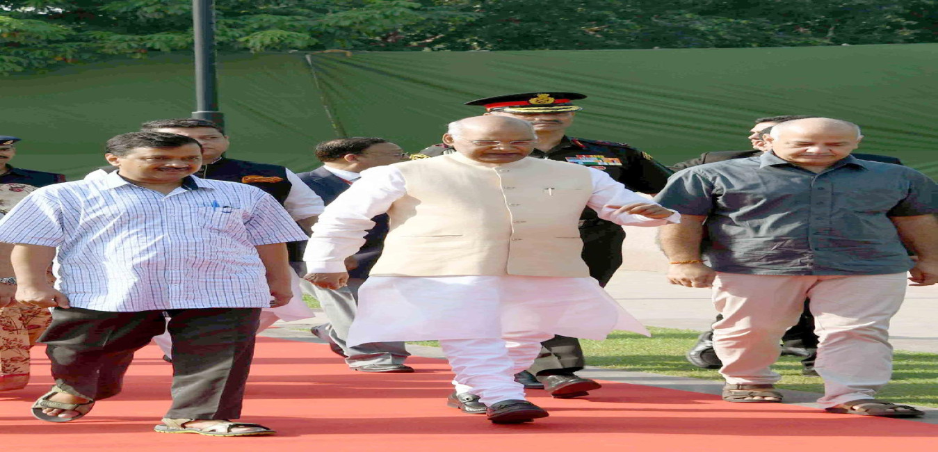 The Chief Minister of Delhi, Shri Arvind Kejriwal and the Deputy Chief Minister of Delhi, Shri Manish Sisodia calling on the President of India, Shri Ram Nath Kovind, at Rashtrapati Bhavan on July 28, 2017.