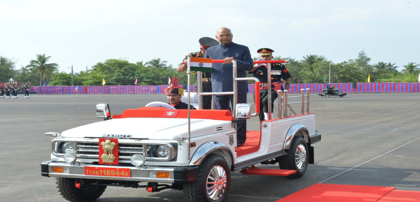 The President of India, Shri Ram Nath Kovind presenting Colours to Corps of Army Air Defence, at a ceremony, at Gopalpur, Odisha on September 28, 2019.