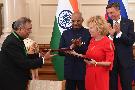 The President of India, Shri Ram Nath Kovind and the President of Slovenia, H.E. Mr. Borut Pahor witnessing the signing of agreements between India and Slovenia, at Presidential Palace, in Ljubljana, Slovenia on September 16, 2019.