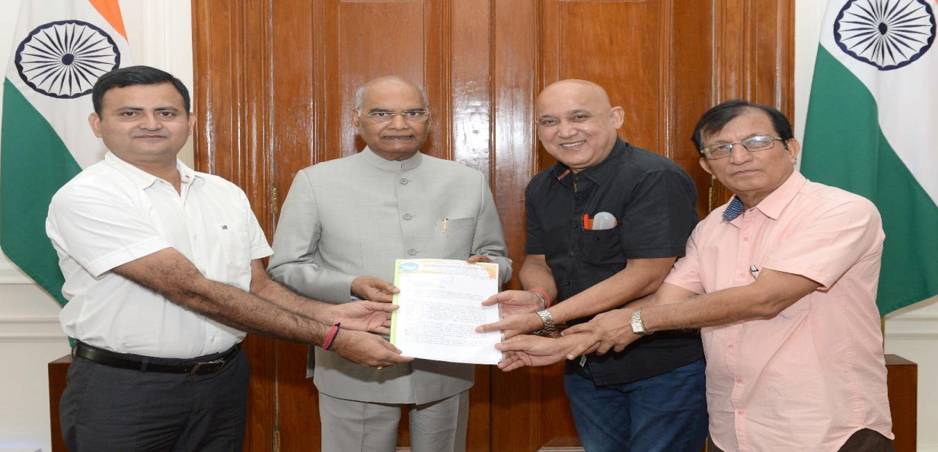 Shri Chandan Bhattacharya, President Sachetan Nagarik Mancha Axom with others meeting with the President of India, Shri Ram Nath Kovind, at Rashtrapati Bhavan on June 29, 2019.