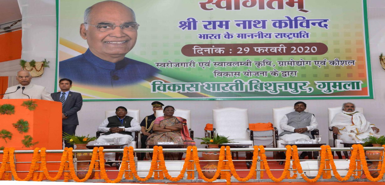 The President of India, Shri Ram Nath Kovind visiting the Vikas Bharati Bishunpaur, Gumla Tribal Centre, in Gumla, Jharkhand on February 29, 2020.