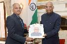 The Ambassador-designate of India to Senegal, Shri G.V. Srinivas meeting with the President of India, Shri Ram Nath Kovind, at Rashtrapati Bhavan on June 18, 2019.