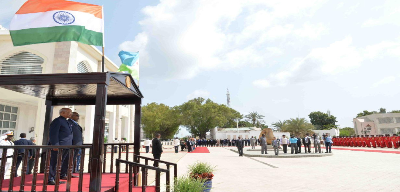 The President of India, Shri Ram Nath Kovind being received by the President of Djibouti, HE Mr. Ismail Omar Guelleh, at the Ceremonial Welcome, at Presidential Palace, in Djibouti on October 04, 2017.