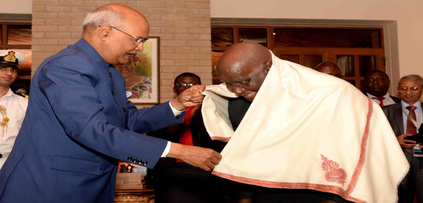 The President of India, Shri Ram Nath Kovind meeting with Dr. Kenneth David Kaunda at his residence, at Lusaka, in the Republic of Zambia on April 11, 2018.