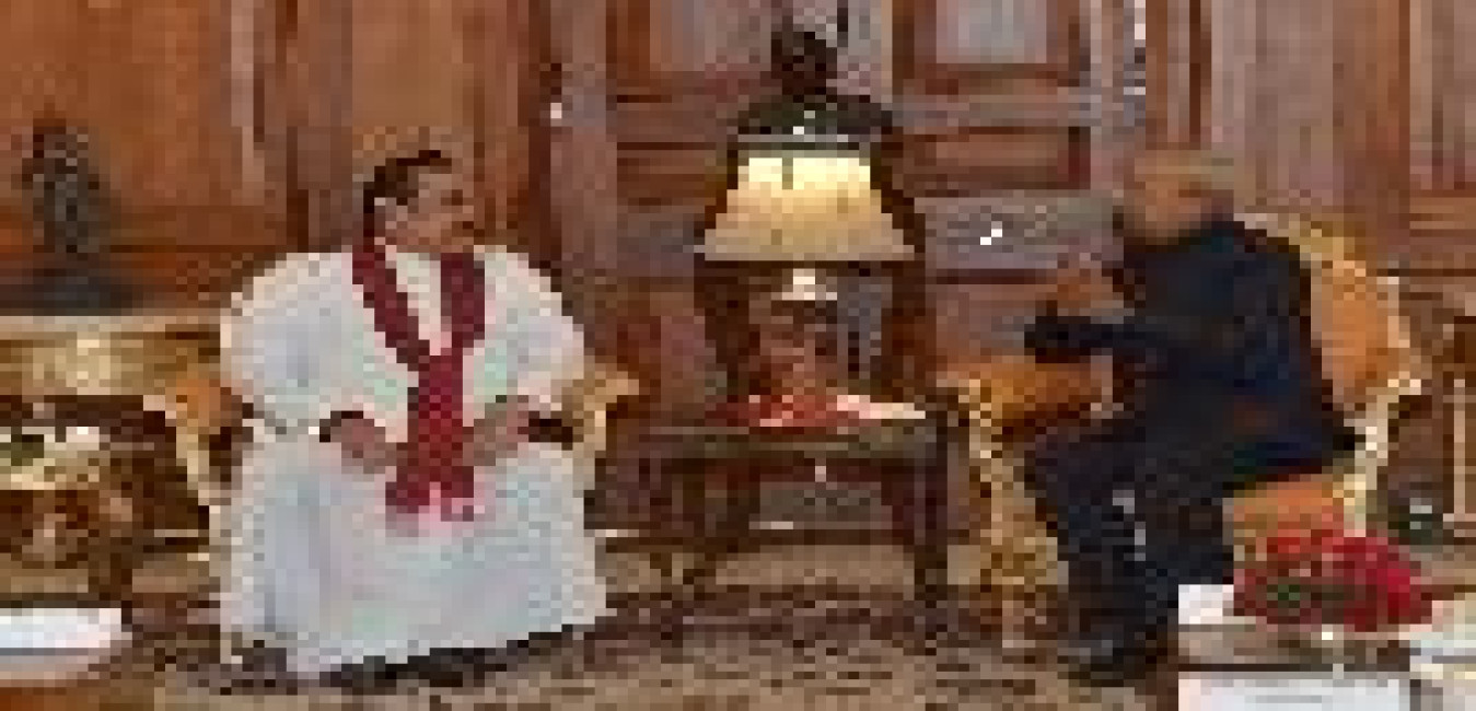 The Prime Minister of the Democratic Socialist Republic of Sri Lanka, Mr. Mahinda Rajapaksa calling on the President of India, Shri Ram Nath Kovind, at Rashtrapati Bhavan on February 08, 2020.