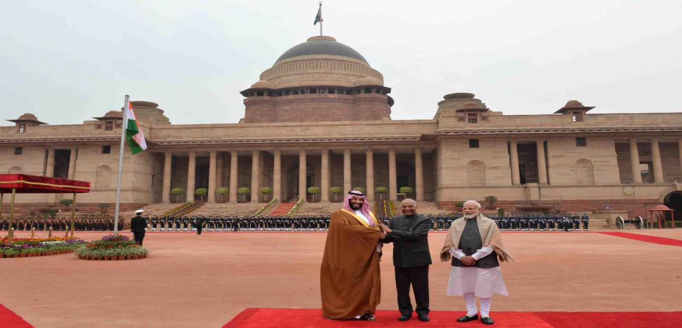 The President of India, Shri Ram Nath Kovind hosting a Banquet in honour of His Royal Highness Prince Mohammed Bin Salman Bin Abdulaziz Al-Saud, Crown Prince, Vice President of the Council of Ministers and Minister of Defence of the Kingdom of Saudi Arabia, at Rashtrapati Bhavan on February 20, 2019.