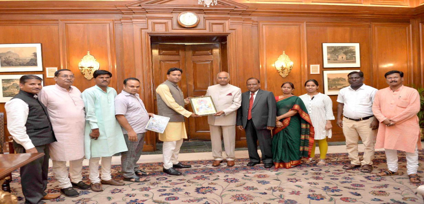 Dr. Mohan Lal Mahor, Rashtriya Pravakta and Media Prabhari with others from Akhil Bhartiya Koli Samaj, Madhya Pradesh Branch, Gwalior meeting with the President of India, Shri Ram Nath Kovind, at Rashtrapati Bhavan on August 23, 2018.