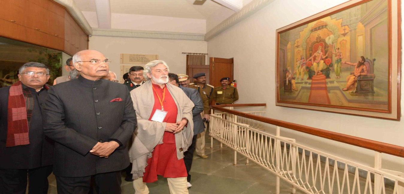 The President of India, Shri Ram Nath Kovind visiting the Ram Darshan and receiving the first copy of the Coffee Table Book on Ramdarshan from the Governor, Madhya Pradesh, Shri Om Prakash Kohli, at Chitrakoot, in Madhya Pradesh on January 08, 2018.