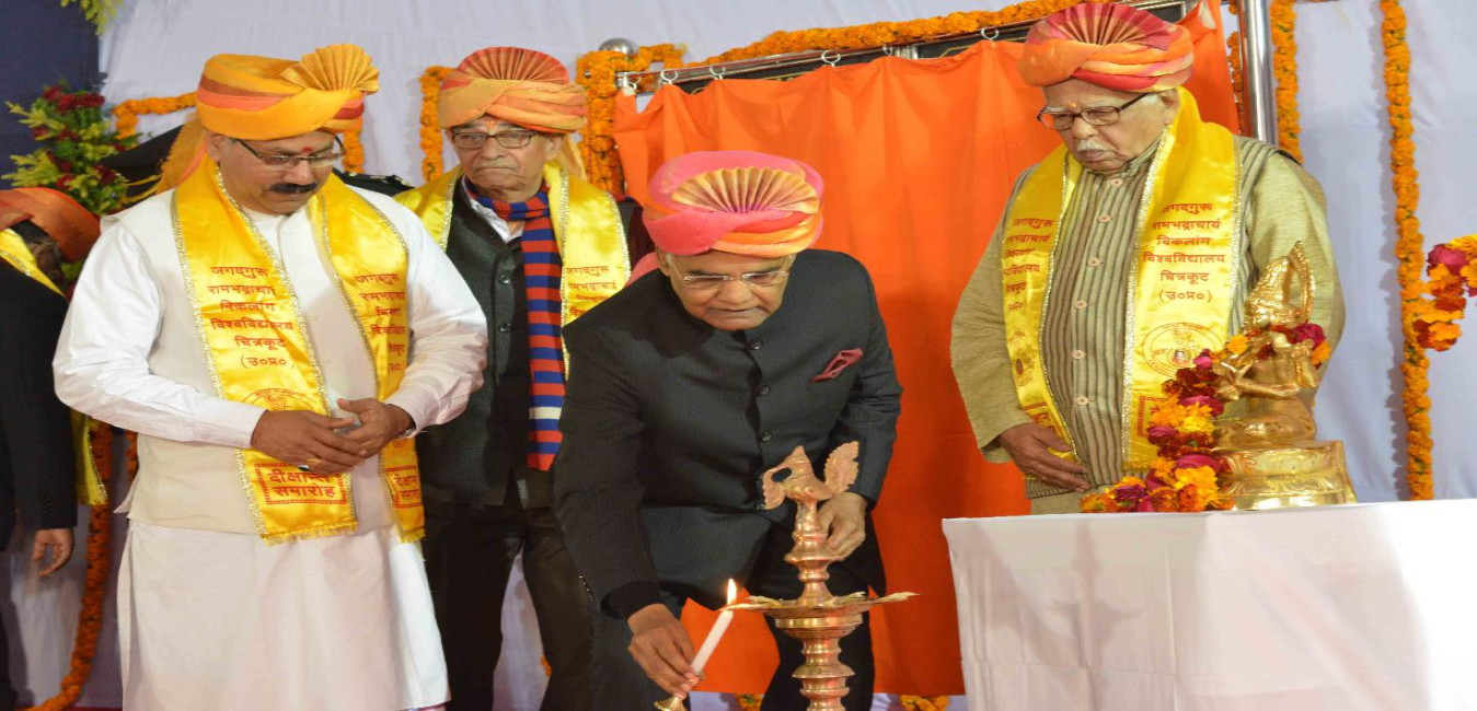 The President of India, Shri Ram Nath Kovind gracing at the 7th convocation of Jagadguru Rambhadracharya Handicapped University, at Chirakoot, in Uttar Pradesh on January 08, 2018.