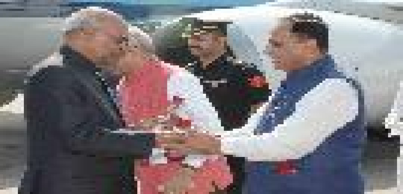 The President of India, Shri Ram Nath Kovind being received by the Governor of Madhya Pradesh, Shri Om Prakash Kohli and the Chief Minister of Madhya Pradesh, Shri Shivraj Singh Chouhan, on his arrival, at Bhopal airport, in Madhya Pradesh on November 10, 2017.