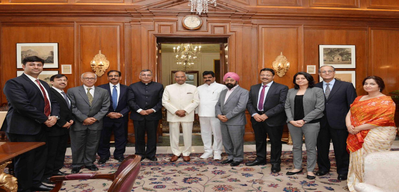 Shri Om Prakash Yadav, MP (LS) alongwith a delegation of doctors and office bearers of the Sambandh Health Foundation & Voice of Tobacco Victims Initiative meeting with the President of India, Shri Ram Nath Kovind, at Rashtrapati Bhavan on March 28, 2018.