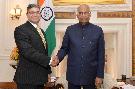 The Ambassador-designate of India to the Republic of Tunisia, Shri Puneet R. Kundal meeting with the President of India, Shri Ram Nath Kovind, at Rashtrapati Bhavan on August 06, 2019.