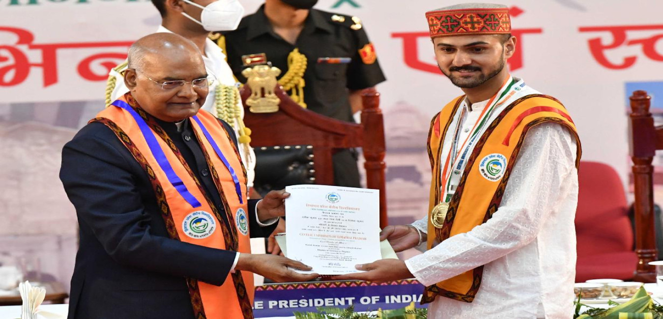 The President of India, Shri Ram Nath Kovind gracing the 6th annual convocation of Central University of Himachal Pradesh, at Dharamshala on June 10, 2022.