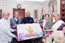 Shri Rajesh Gupta, Trustee, Vipassana Centre, Jaipur with others meeting with the President of India, Shri Ram Nath Kovind, at Rashtrapati Bhavan on December 04, 2017.