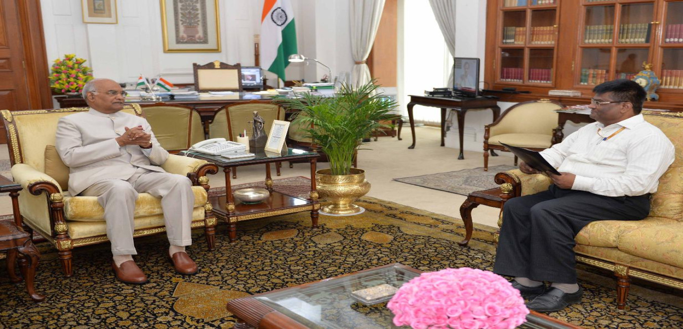 Dr. Ram Shanker Kureel, former Vice Chancellor, Dr. BR Ambedkar University of Social Sciences, Mhow meeting with the President of India, Shri Ram Nath Kovind, at Rashtrapati Bhavan on July 12, 2018.