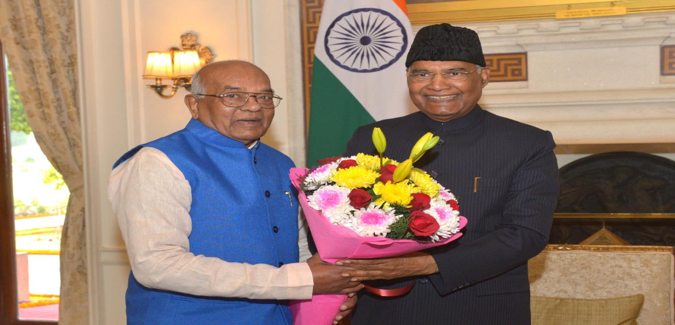 The Governor of Haryana, Shri Satyadeo Narayan Arya meeting with the President of India, Shri Ram Nath Kovind, at Rashtrapati Bhavan on November 07, 2019.