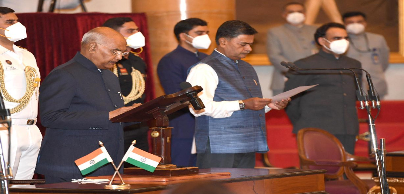 The President of India, Shri Ram Nath Kovind administering oath of office and secrecy to the members of Council of Ministers, at a swearing-in ceremony, at Rashtrapati Bhavan on July 07, 2021.