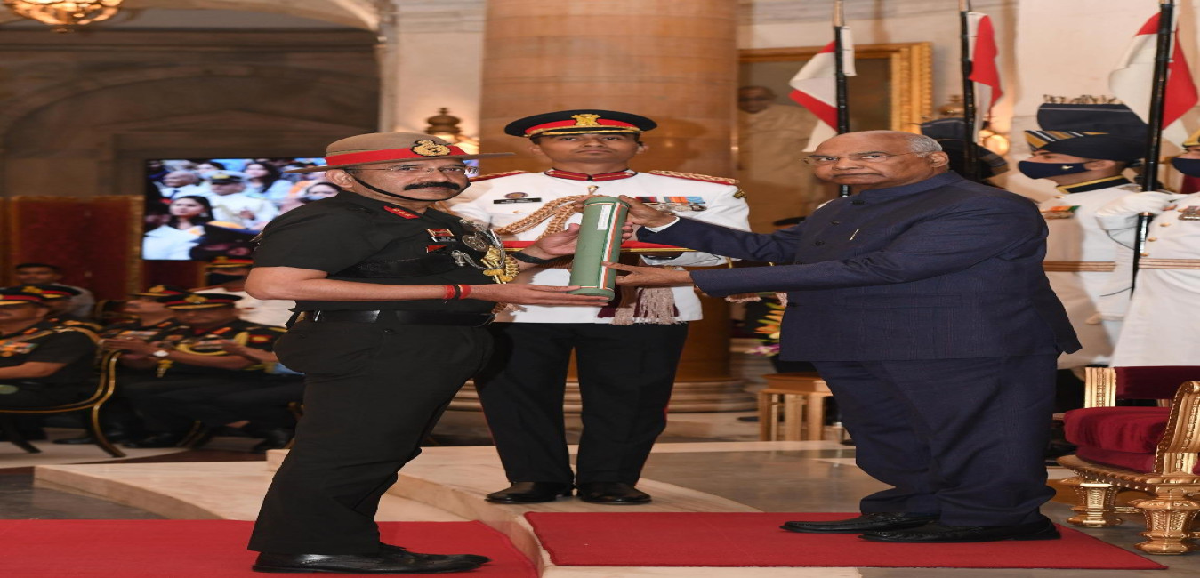 The President of India, Shri Ram Nath Kovind presents the Gallantry Awards and Distinguished Service Decorations for the year 2020, at the Defence Investiture Ceremony-I, at Rashtrapati Bhavan on November 22, 2021.