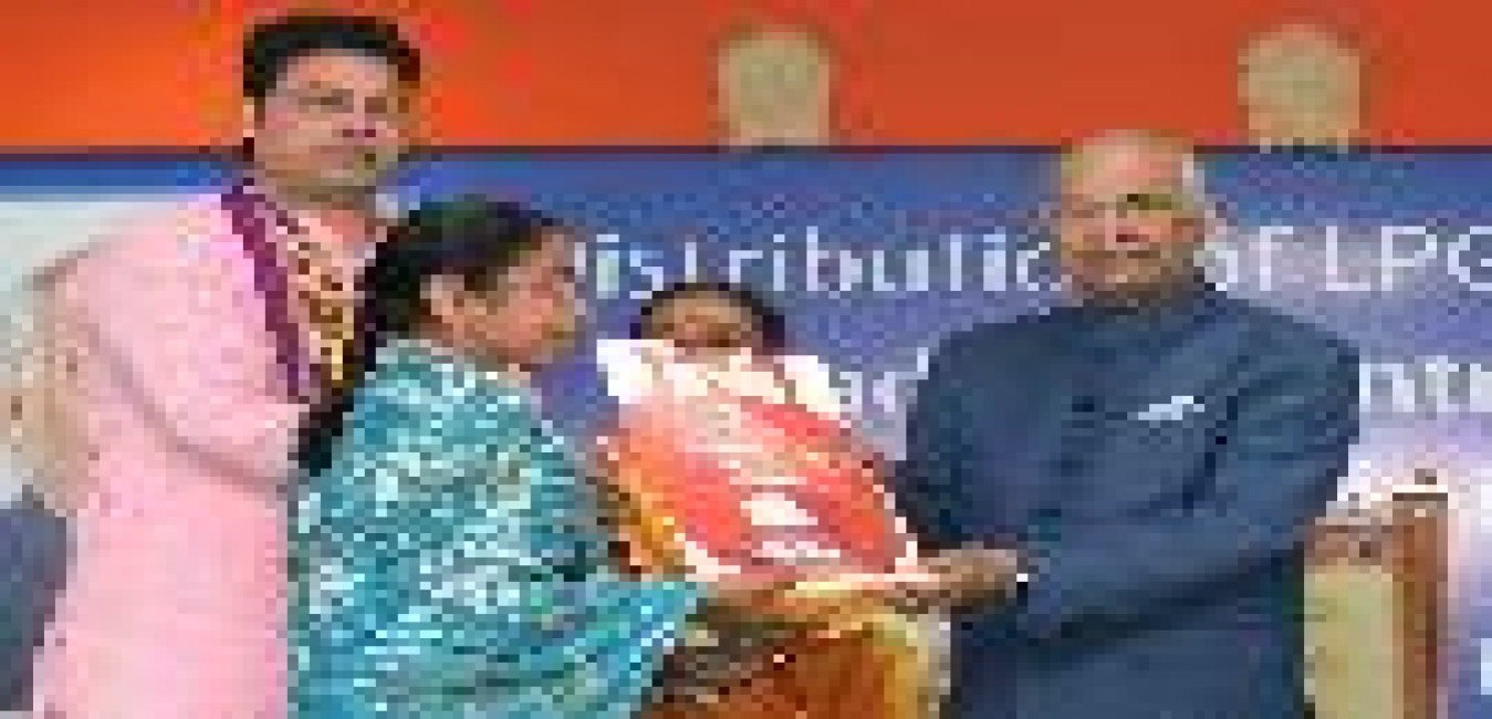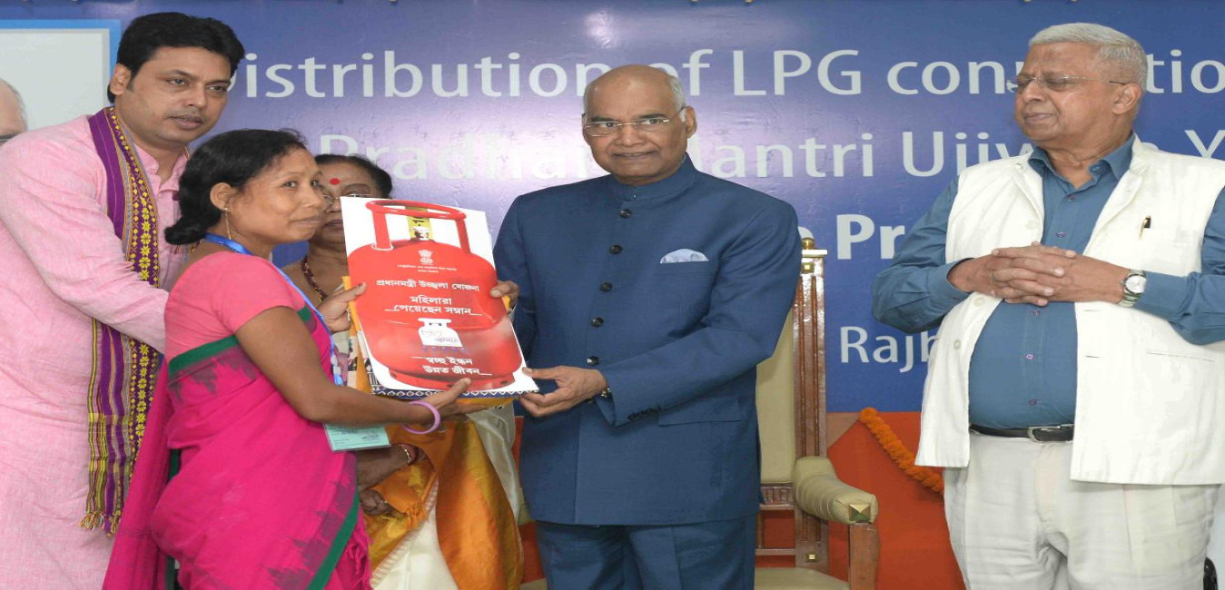 The President of India, Shri Ram Nath Kovind distributing LPG Gas Connection under Pradhan Mantri Ujjwala Yojana to the beneficiaries, at Raj Bhavan, Agartala, in Tripura on June 08, 2018.
