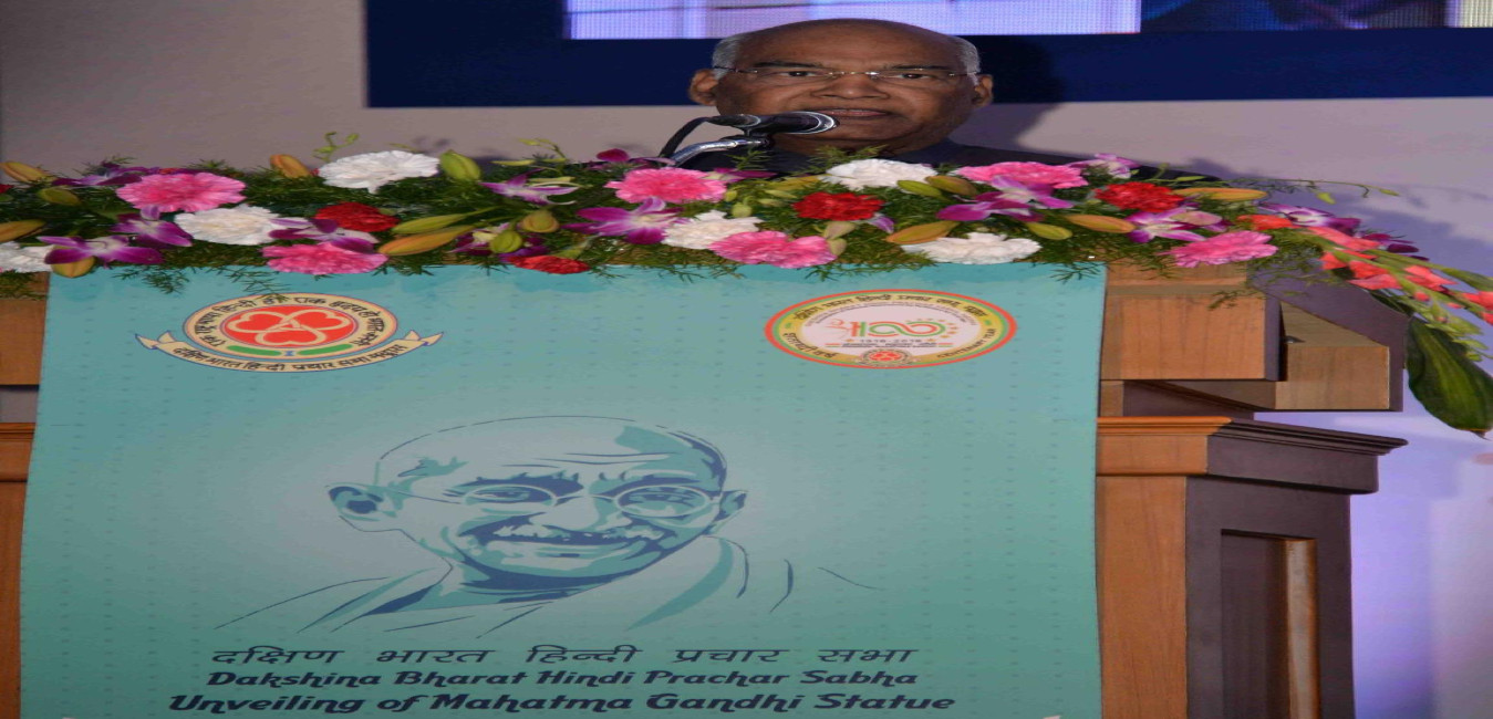 The President of India, Shri Ram Nath Kovind unveiling the statue of Mahatma Gandhi, at the Dakshina Bharat Hindi Prachar Sabha, in Chennai on February 21, 2019.