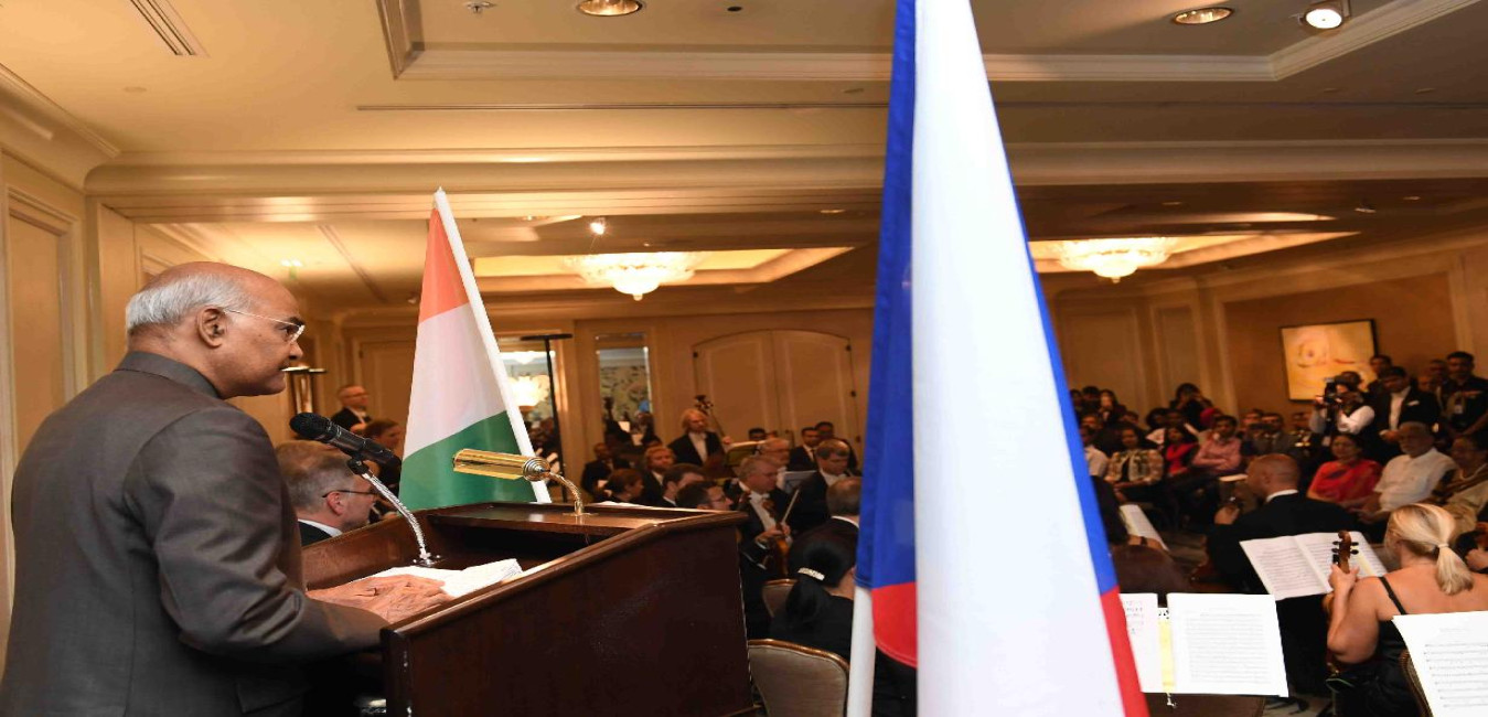 The President of India, Shri Ram Nath Kovind attending the Indian Community Reception, at Four Seasons Hotel, Prague, in the Czech Republic on September 06, 2018.