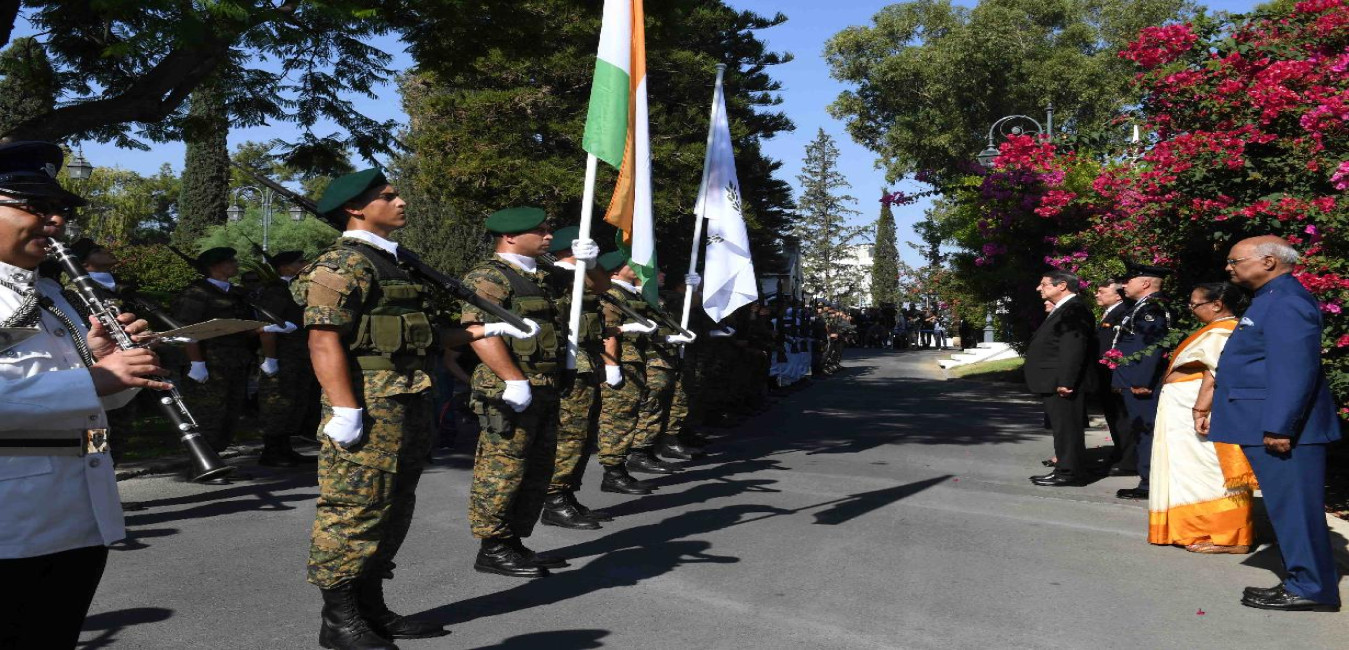 The President of India, Shri Ram Nath Kovind being accorded a ceremonial welcome by the President of Cyprus, Mr. Nicos Anastasiades, at Presidential Palace, in Nicosia, Cyprus on September 03, 2018.