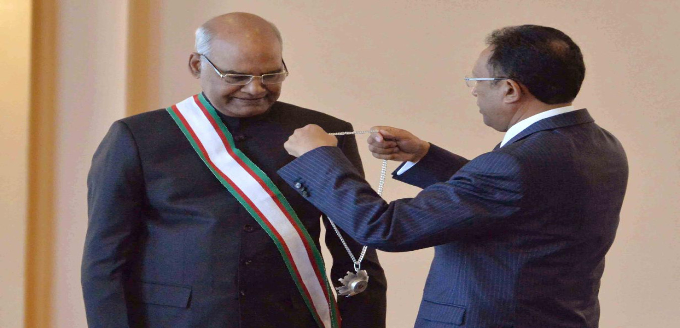 The President of Madagascar, H.E. Mr. Hery Rajaonarimampianina conferring the Grand Cross of the Second Class on the President of India, Shri Ram Nath Kovind, at Presidential Lavoloha Palace, in Madagascar on March 14, 2018. This is the highest honour Madagascar bestows on a non-citizen.