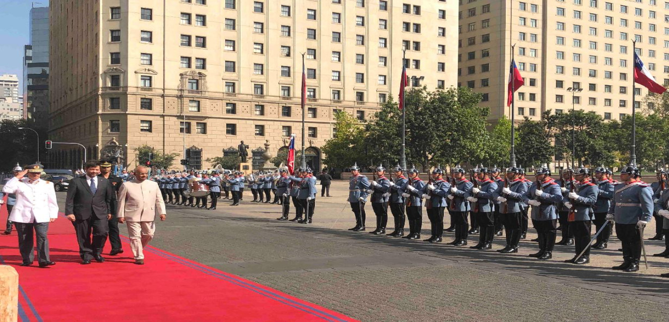 The President of India, Shri Ram Nath Kovind accorded a Ceremonial Welcome by the President of Chile, H.E. Mr. Sebastian Pinera, at 'La Moneda' Presidential Palace, Santiago, in the Republic of Chile on April 01, 2019.