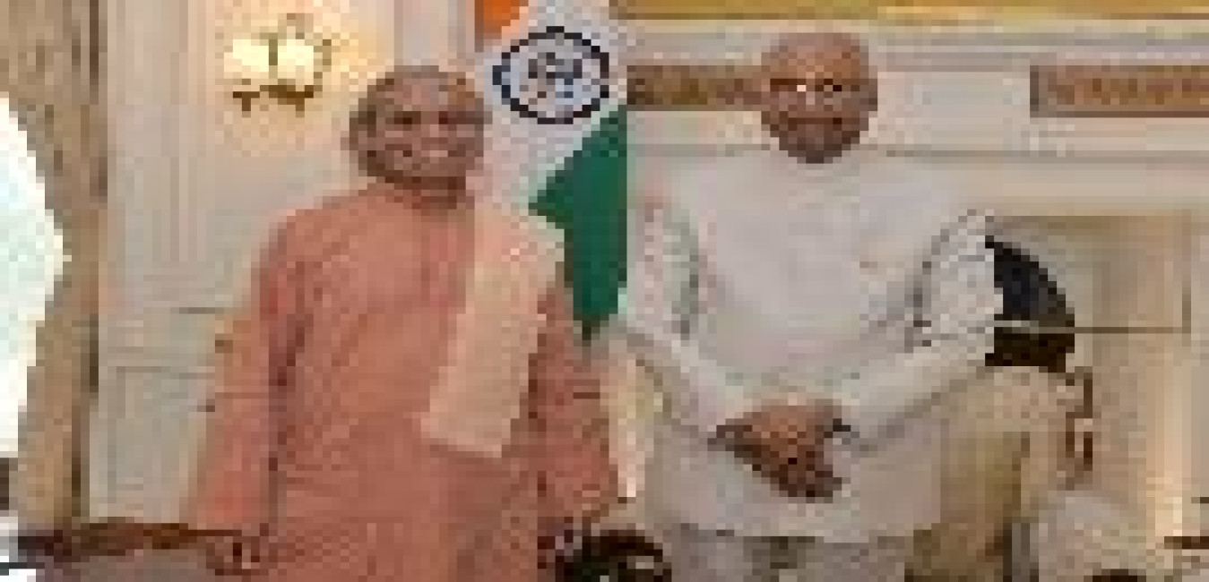Swami Smaranananda Giri, General Secretary, Yogoda Satsanga Society of India, Ranchi meeting with the President of India, Shri Ram Nath Kovind, at Rashtrapati Bhavan on August 05, 2019.