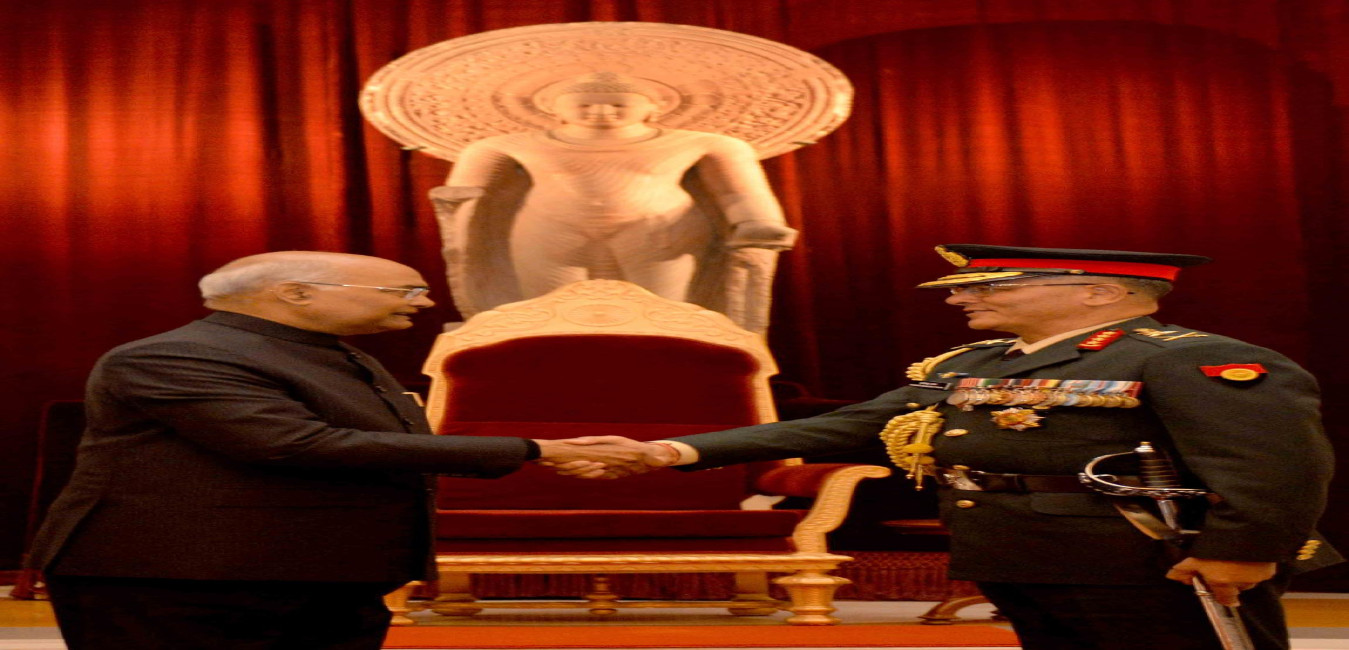 The President of India, Shri Ram Nath Kovind conferring the Honorary Rank of General of the Indian Army on Sukirtimaya Rashtradeep General Purna Chandra Thapa, Chief of the Army Staff, Nepalese Army, at Rashtrapati Bhavan on January 12, 2019.