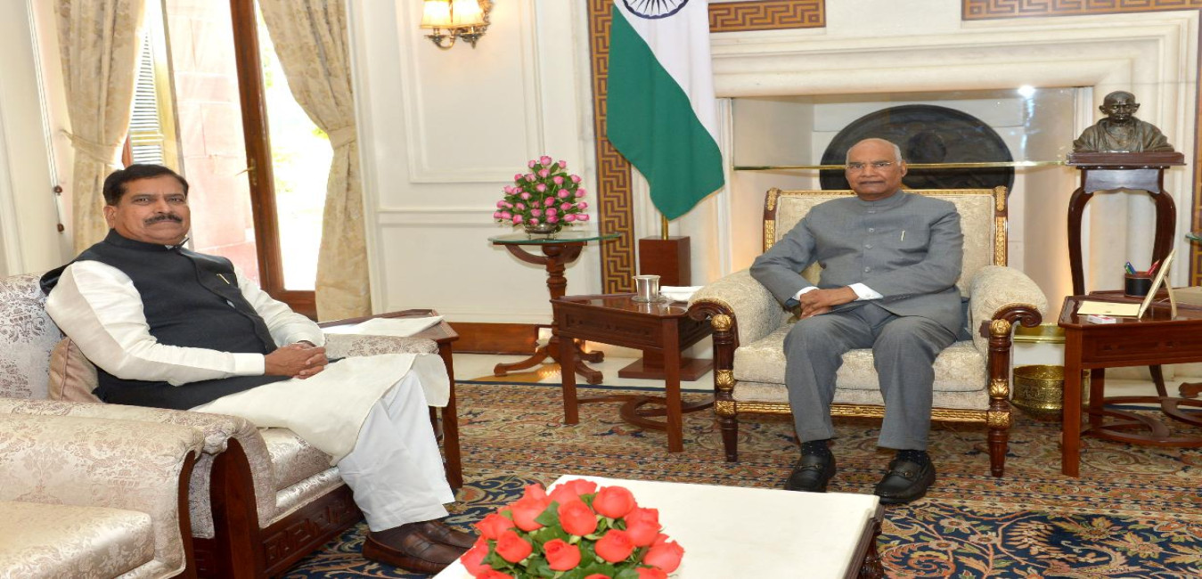 The Minister of State for Railways, Shri Suresh C. Angadi meeting with the President of India, Shri Ram Nath Kovind, at Rashtrapati Bhavan on March 04, 2020.
