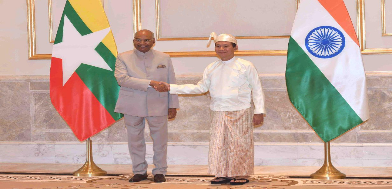 The President of India, Shri Ram Nath Kovind with the President of Myanmar, H.E. Mr. U. Win Myint, at Presidential Palace, Nay Pyi Taw, in Myanmar on December 11, 2018.