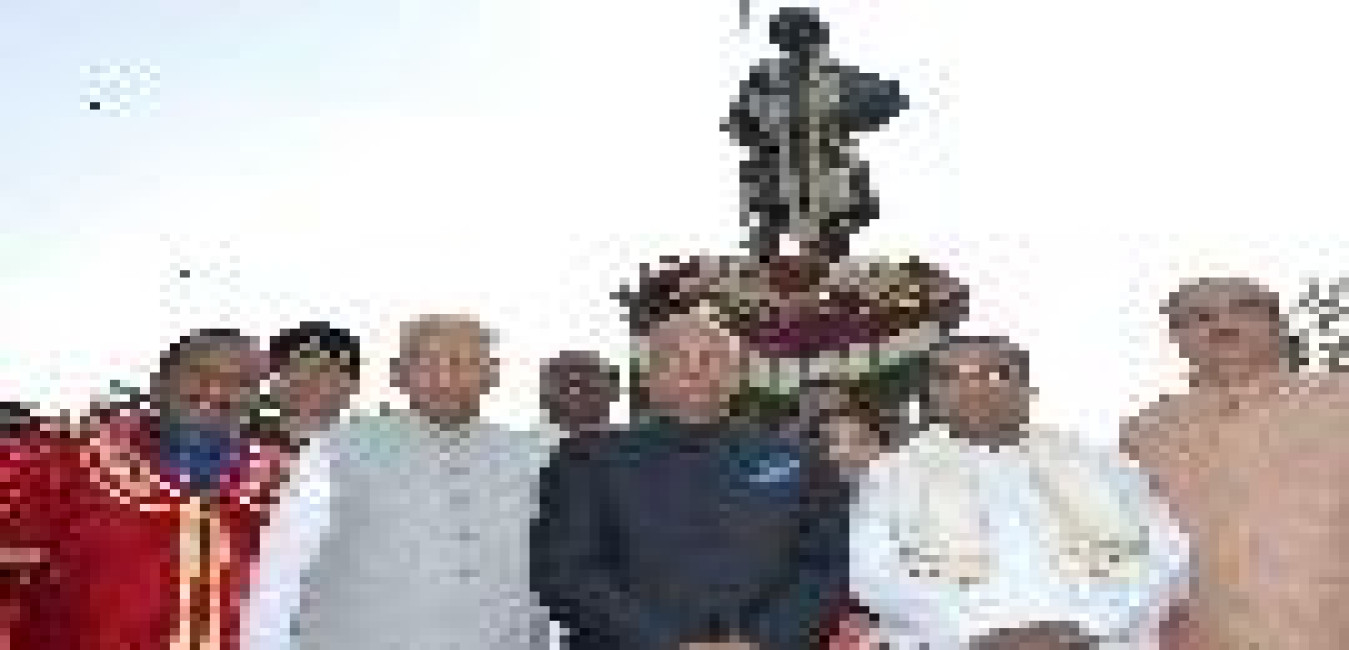 The President of India, Shri Ram Nath Kovind garlanding at the statue of Shri Kempegowda, in Bengaluru, Karnataka on October 24, 2017.